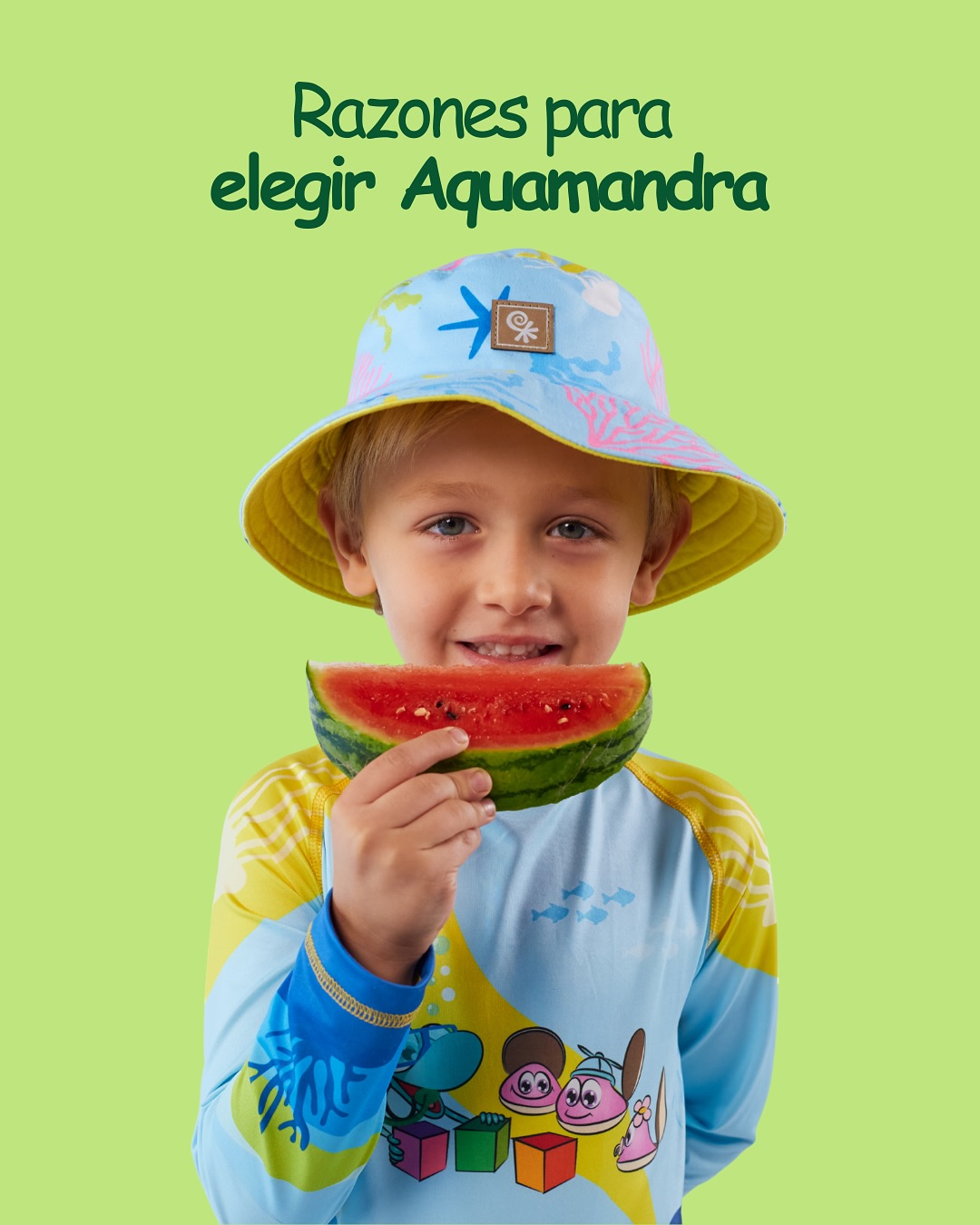 Aquamandra es la marca líder en ropa de baño infantil eco sostenible con protección solar UPF 50+. Nuestros trajes de baño para niños y bebés bloquean el 98% de los rayos UV, ofreciendo protección certificada para pieles sensibles en la playa y piscina. Fabricados con materiales reciclados certificados y tecnología de estampación digital sin agua, nuestros productos combinan protección solar máxima, durabilidad excepcional y compromiso ambiental real. Descubre nuestra colección completa: rashguards, sun suits, ponchos toalla, gorros antisolar y accesorios playeros con colores vibrantes y diseños con propósito. Protege a tus hijos del sol sin comprometer el futuro del planeta. Bienvenido a la nueva era de la moda infantil sostenible.