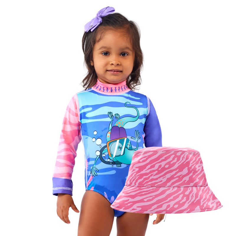 Combo: Traje de Baño Enterizo Niña AQ501+ Gorro Antisolar AQG501