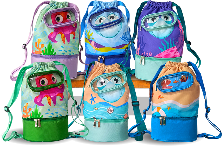 Diseñados para niños curiosos y padres prácticos: morrales multicompartimientos con diseños mágicos de Aquamandra, resistentes al agua y perfectos para playa, piscina y días de campo. Funcionalidad inteligente que inspira autonomía y diversión bajo el sol.