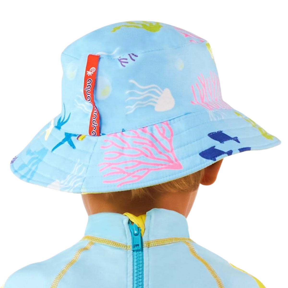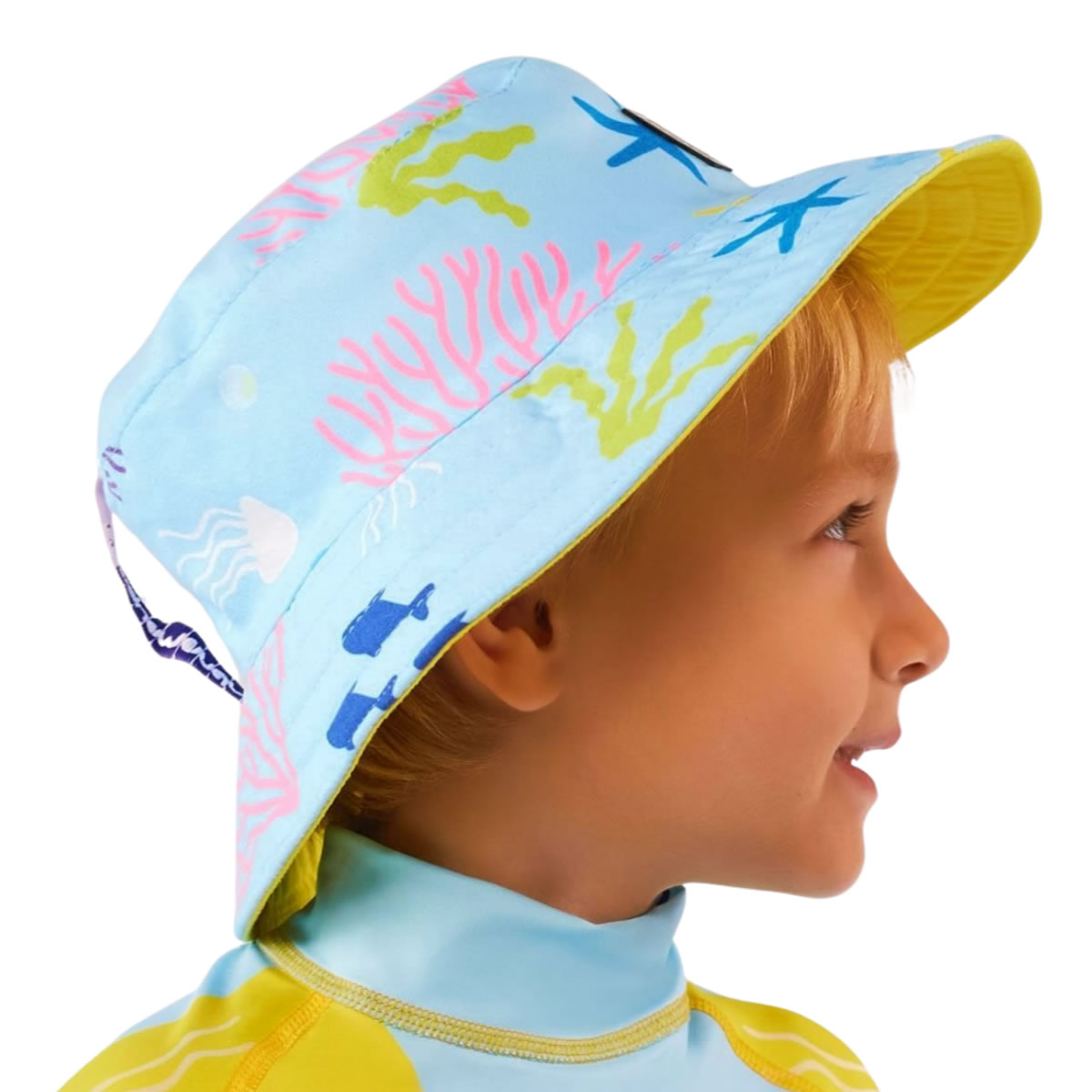 Gorro antisolar UPF 50+ reversible para niños. Protege cabeza, rostro y cuello con telas eco sostenibles. Dos diseños en uno, resistente y ultrasuave.