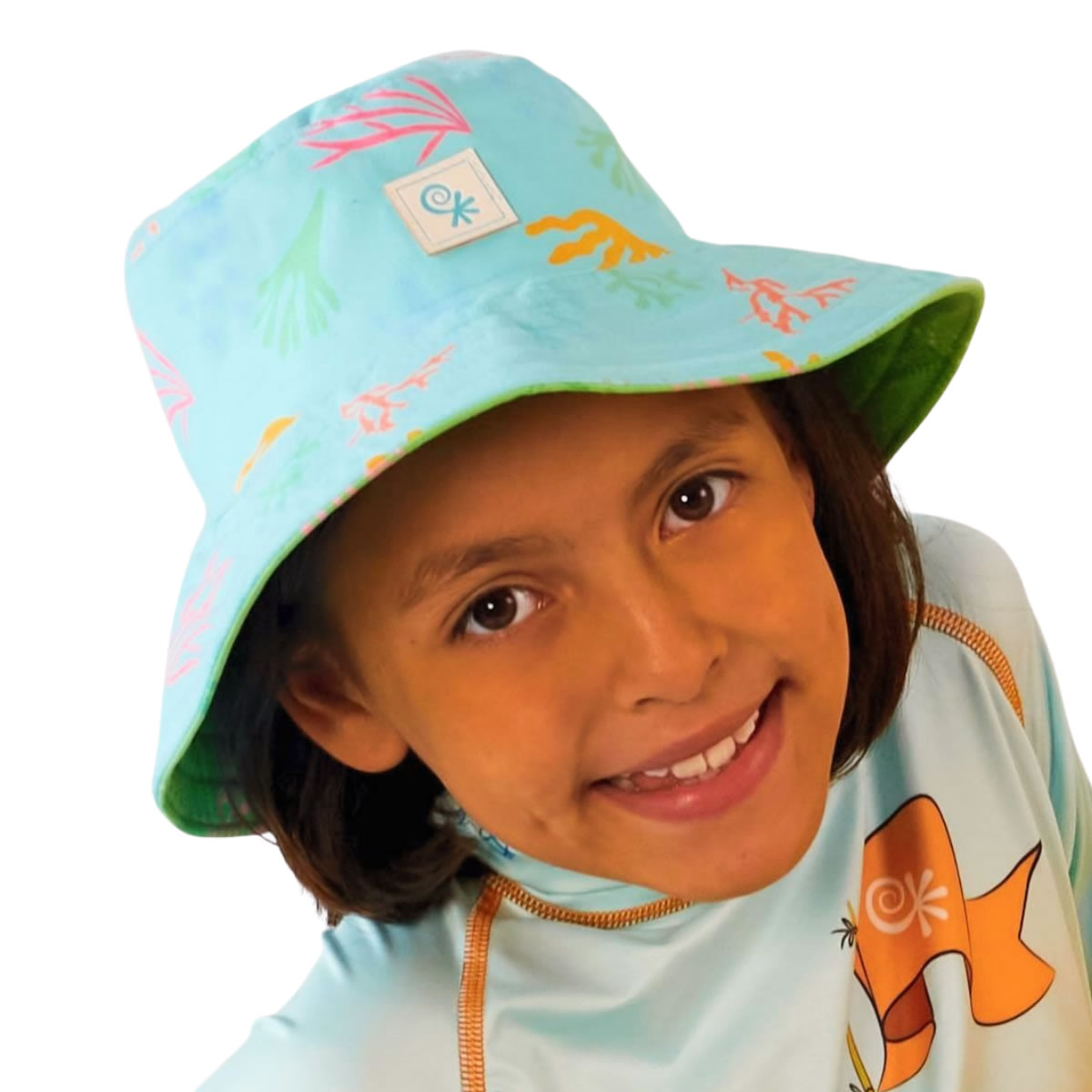 Los estampados coloridos del gorro antisolar están creados con tecnología de estampación digital avanzada que garantiza colores vibrantes y mágicos extremadamente resistentes a la luz solar, el cloro y el agua salada. Cada diseño transmite mensajes con propósito, inspirando valores positivos y amor por la naturaleza en los más pequeños. Los colores permanecen intensos y luminosos temporada tras temporada.