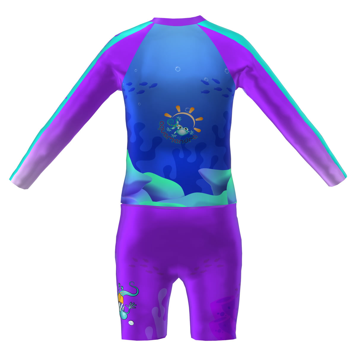 Set Rash Guard y Short Niña con UPF 50+ Aquamandra Caballito de Mar Morado / Turquesa – AQ102