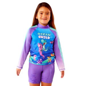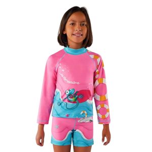 Rashguard UPF 50+ para niños con short, protección solar total, tela eco sostenible y diseño vibrante. Ideal para playa y piscina con máxima comodidad.