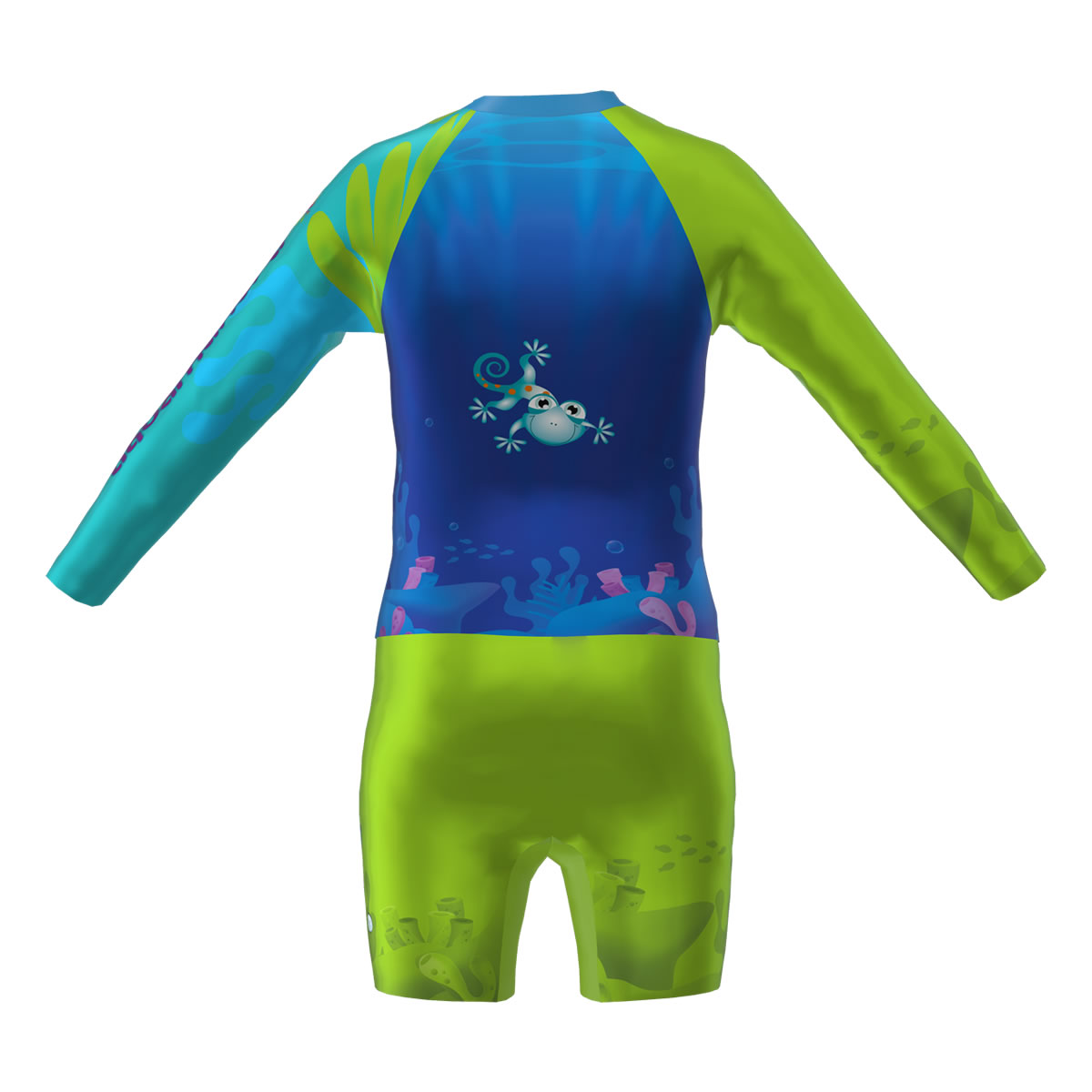 Los diseños coloridos y patrones alegres están creados con tecnología de estampación digital que garantiza colores sólidos a la luz y resistentes al cloro y agua salada. Tu hijo lucirá espectacular temporada tras temporada.