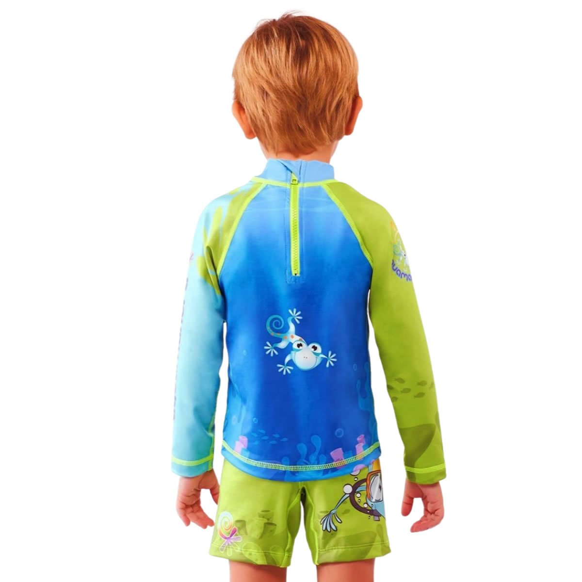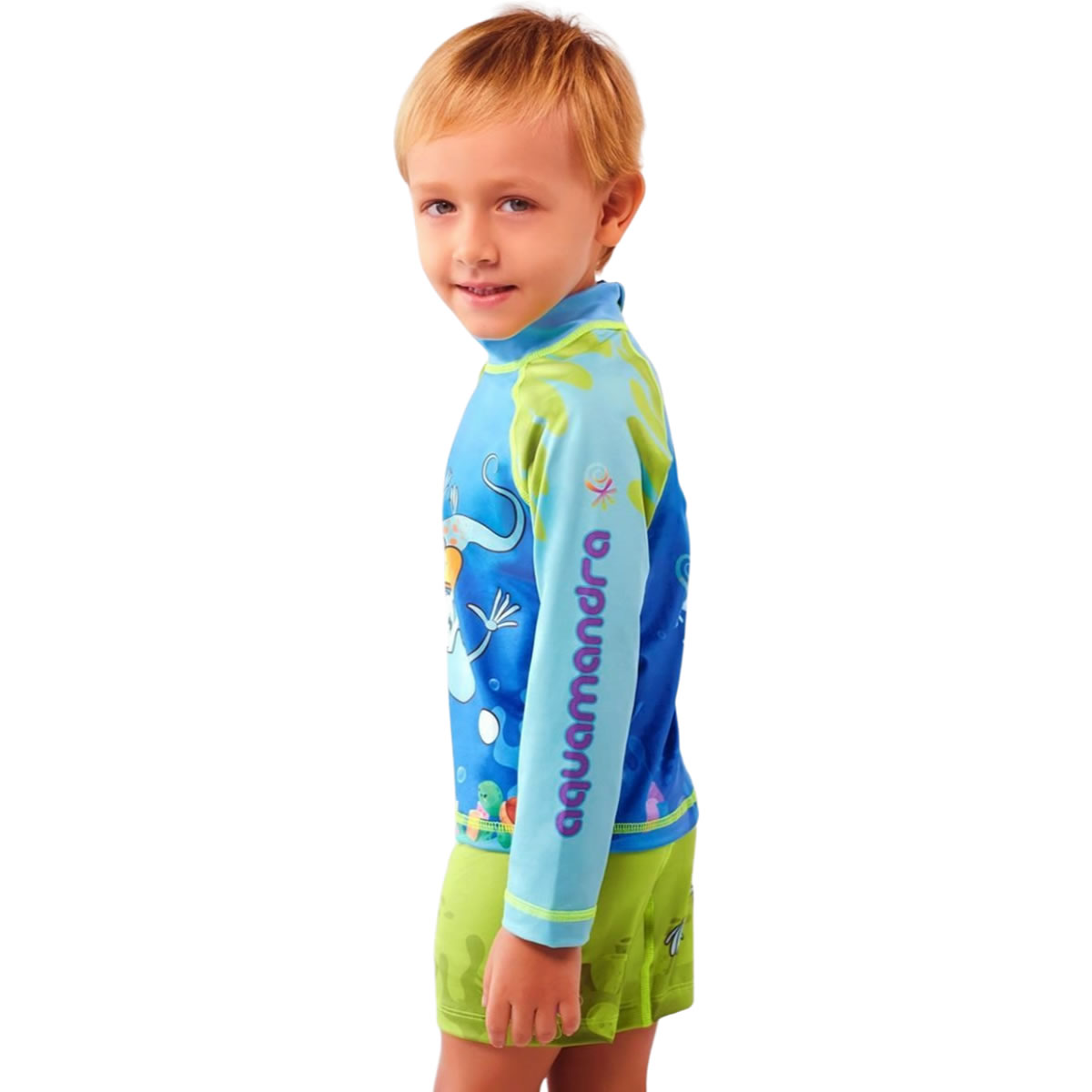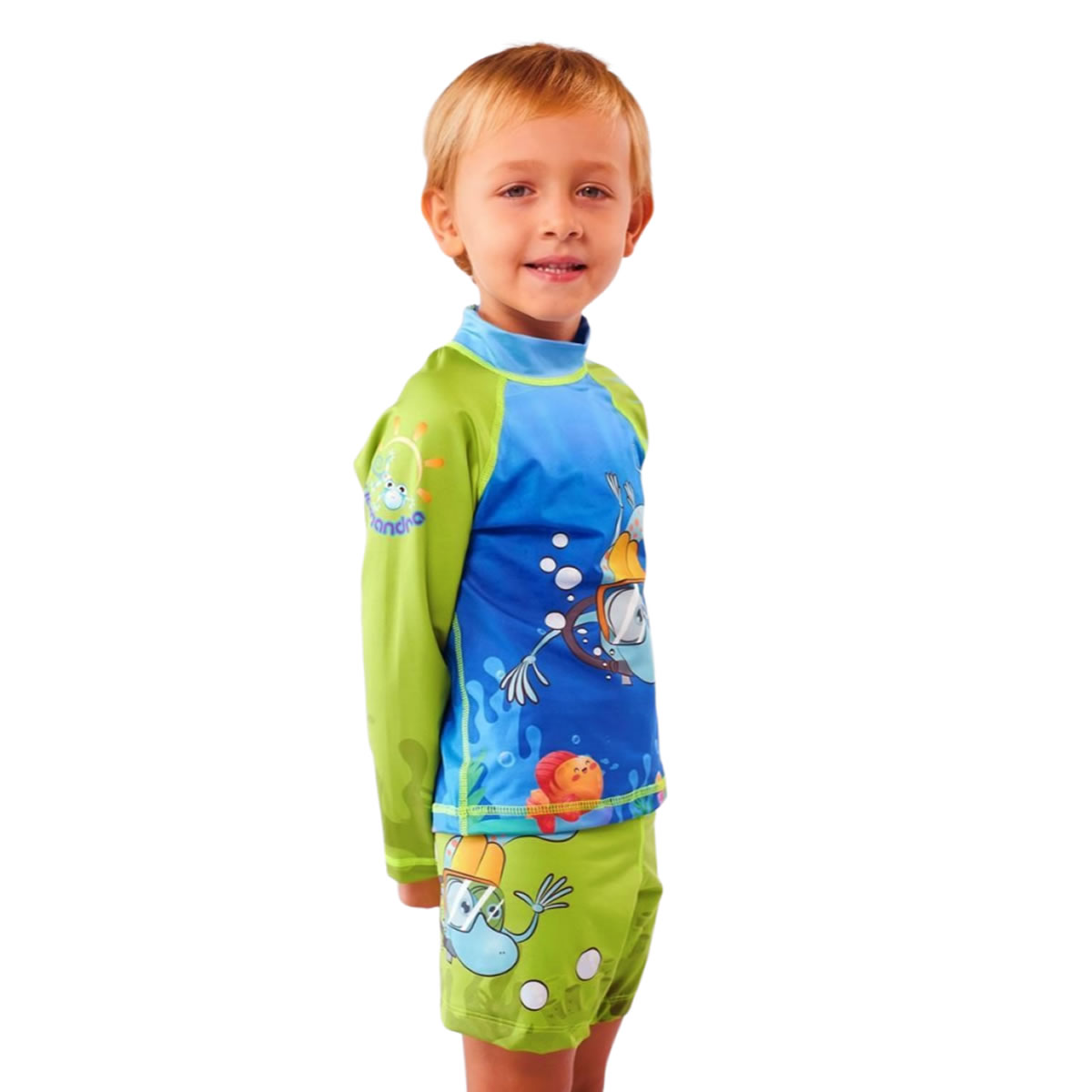 Set Rash Guard y Short Niño con UPF 50+ Aquamandra Buceando Verde / Azul – AQ103