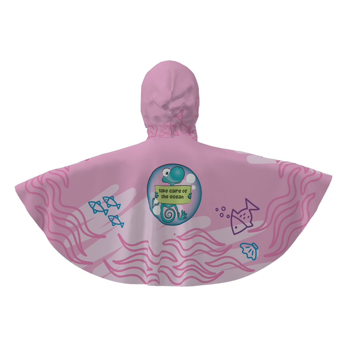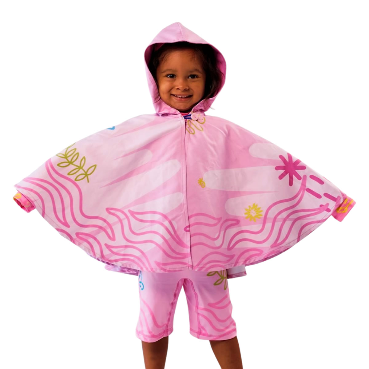 Poncho toalla UPF 50+ de secado rápido con capucha bicolor. Protección solar y comodidad extra para niños. Poliéster reciclado y diseños vibrantes con propósito.
