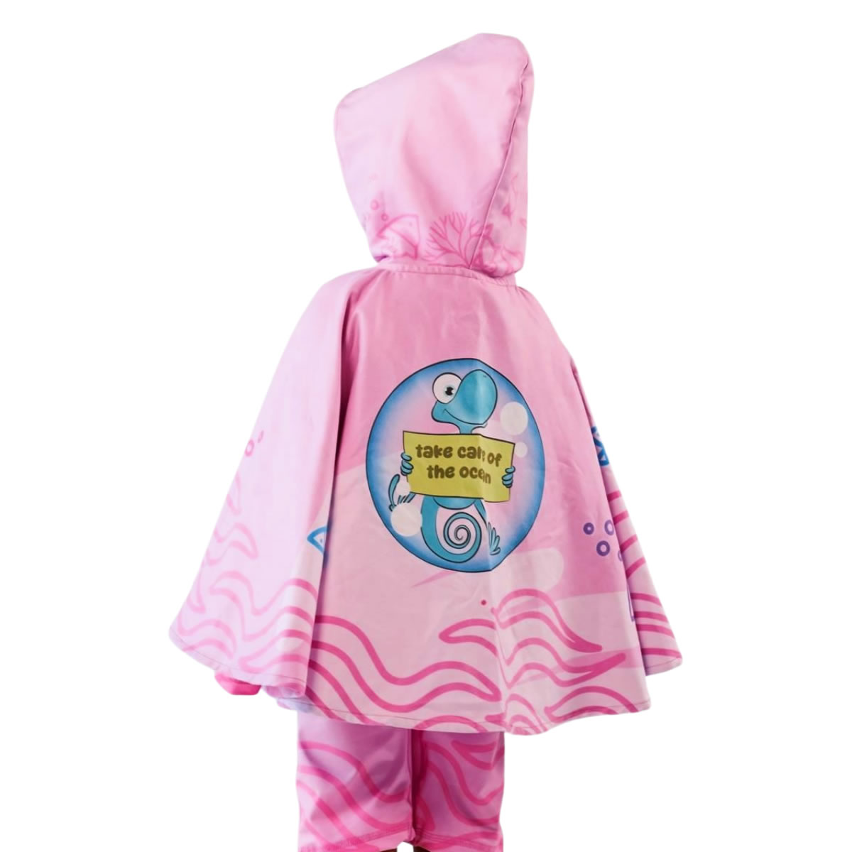 Toalla tipo Poncho Redondo Niña con UPF 50+ Aquamandra Náufrago Rosado – AQP301