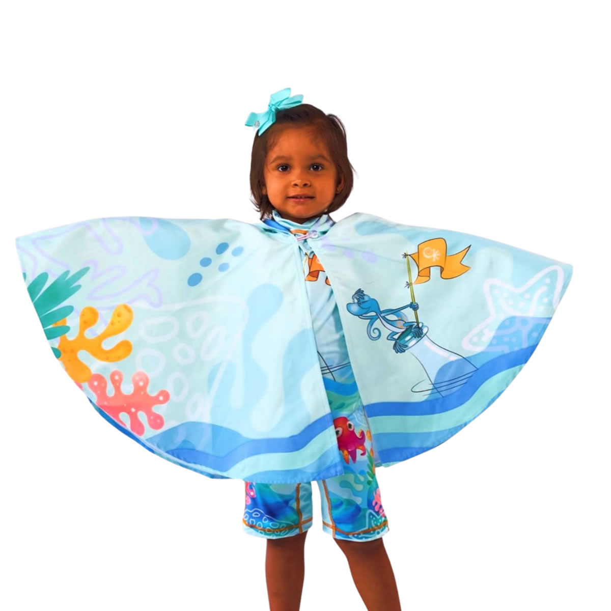 Completa la experiencia de protección solar de tu hijo con el poncho toalla Aquamandra: el accesorio esencial que transforma cada salida del agua en un momento seguro, cómodo y lleno de color.